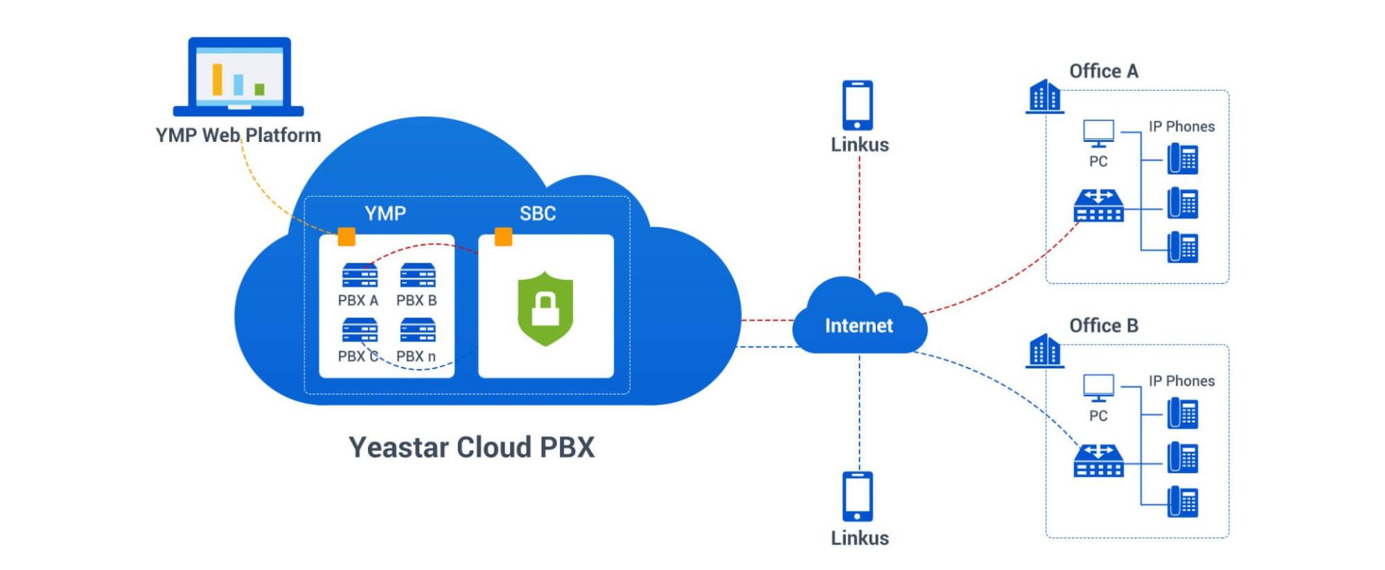 IP PBX (On Cloud) ระบบโทรศัพท์สำหรับใช้งานในสำนักงาน ที่รองรับระบบ IP เชื่อมต่อผ่านเน็ตเวิร์ค ด้วย SIP Protocol มายัง หัวเครื่องโทรศัพท์แบบ IP หรือ Software Softphone โดยที่ไม่ต้องมี Server มาวางไว้ที่สำนักงาน